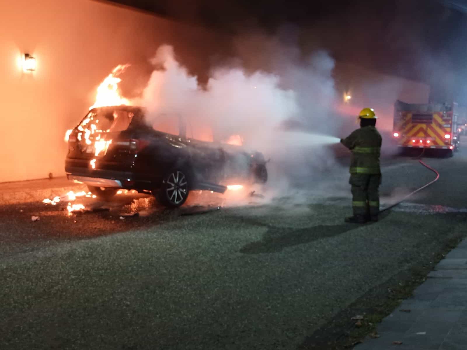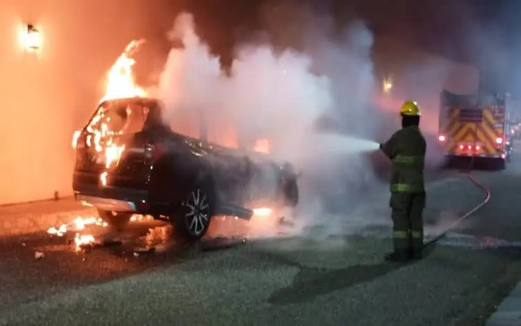 Una camioneta que se encontraba estacionada ardió en llamas la tarde noche de ayer en una de las calles del fraccionamiento Club Campestre.