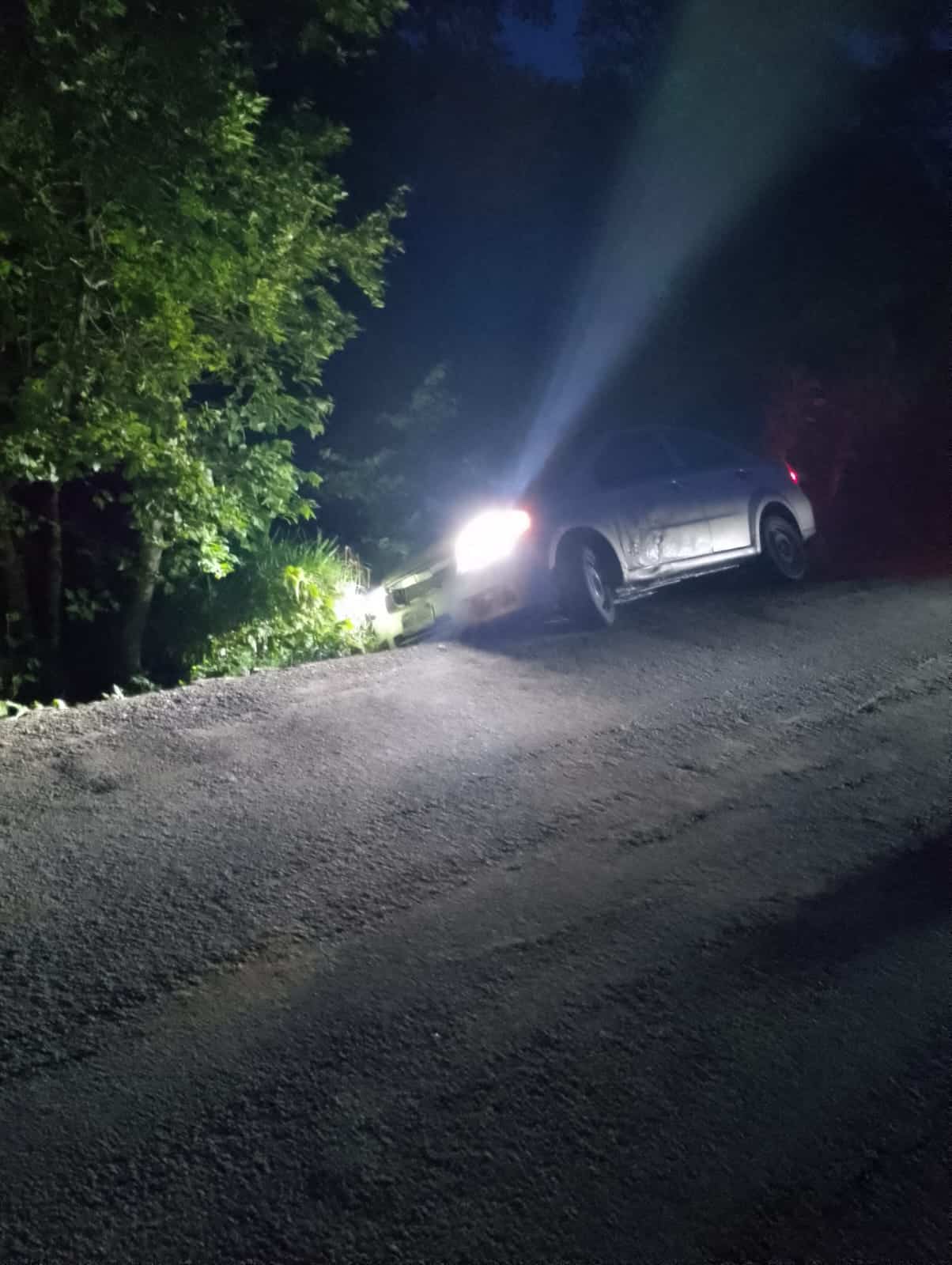 La noche de ayer, un vehículo particular terminó fuera de la carretera mencionada, a la altura de la curva del kilómetro 1+100, aparentemente debido a que su conductor se encontraba en estado de ebriedad.