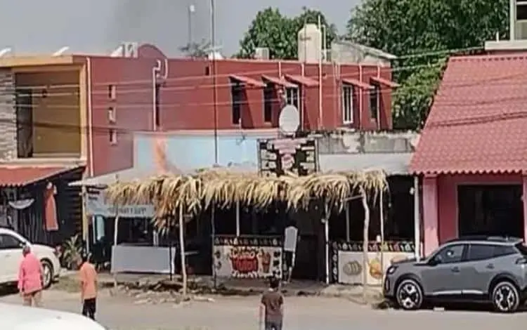 De acuerdo a los datos obtenidos, el cable, al parecer, por un corto circuito se recalentó, se rompió y cayó bajo un automóvil color gris, así como un techo de guano de una taquería.