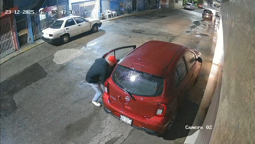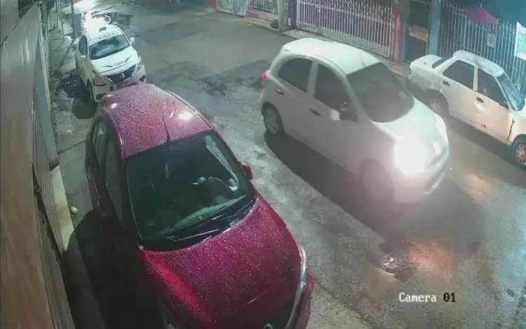 - Las grabaciones muestran que los delincuentes llegaron a bordo de un automóvil color blanco, de la misma línea Nissan March, el cual se estacionó en una esquina.