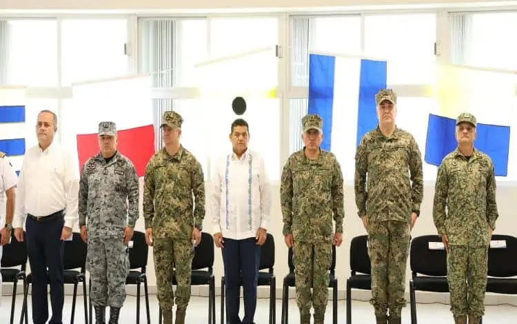 - Durante el acto protocolario, encabezado por el Inspector y Contralor General de Marina, Gerardo de Jesús Toledo Guzmán, quien asistió en representación del titular de la Secretaría de Marina (Semar), Raymundo Pedro Morales Ángeles, el mandatario estatal atestiguó el momento en que Vera Salinas se comprometió a desempeñar leal y patrióticamente su labor, así como honrar y defender la bandera nacional, coadyubando a mantener e incrementar la confianza del pueblo mexicano.