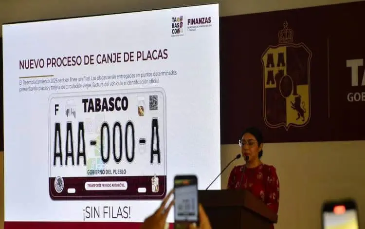 La funcionaria estatal explicó que el proceso de pago para el cambio de placas se podrá realizar en línea a través del sistema de modernización digital "Llave Tabasco", en los puntos para canje de placas que se instalarán en una tienda comercial, y pagos en línea y en bancos en todos los municipios.