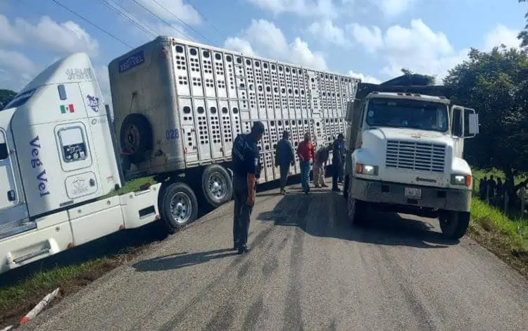 Ayer jueves por la mañana fue paralizada la circulación en la carretera Jalapa - Chichonal a la altura del rancho Carolina, tras un percance entre dos pesadas unidades que terminaron uno fuera de la carpeta asfáltica y el otro atravesado en toda la vialidad.