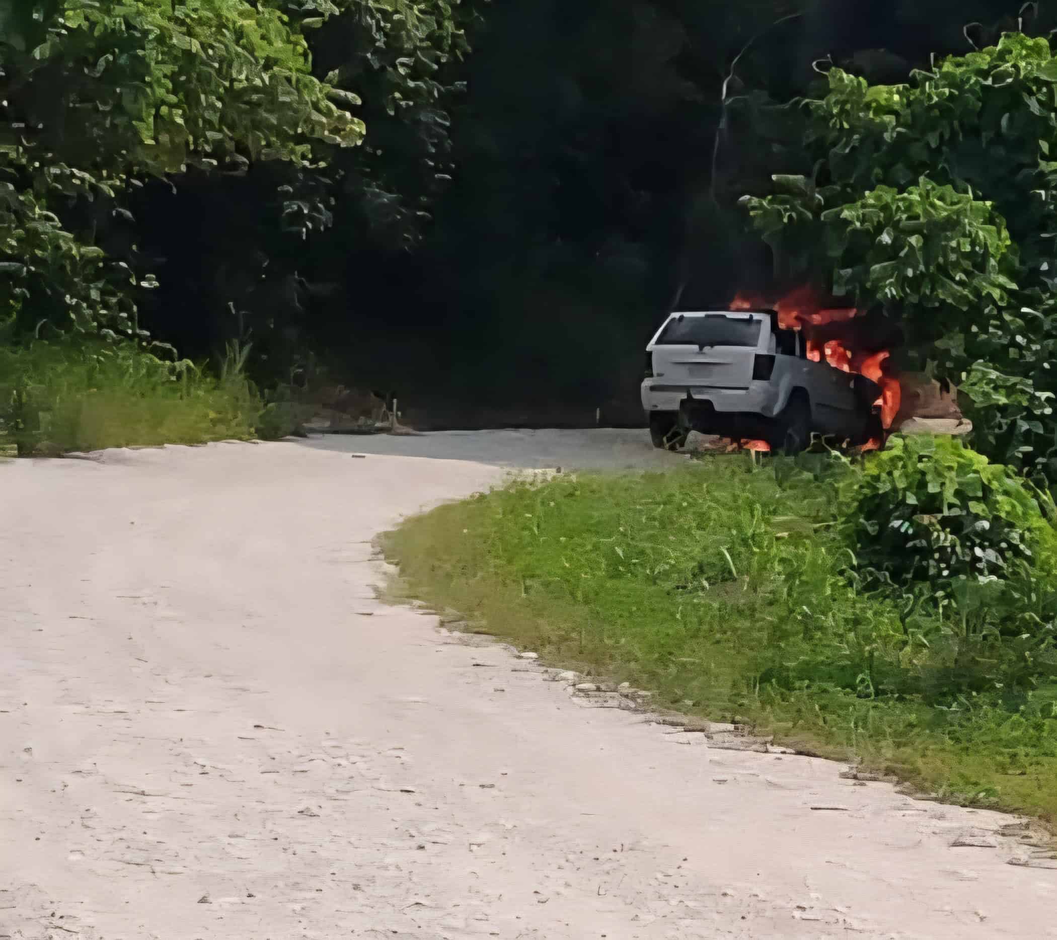 Este domingo, se registró una ligera movilización policíaca, esto luego de que un reporte a los números de emergencias 911, indicaba que una camioneta estaba quemándose.