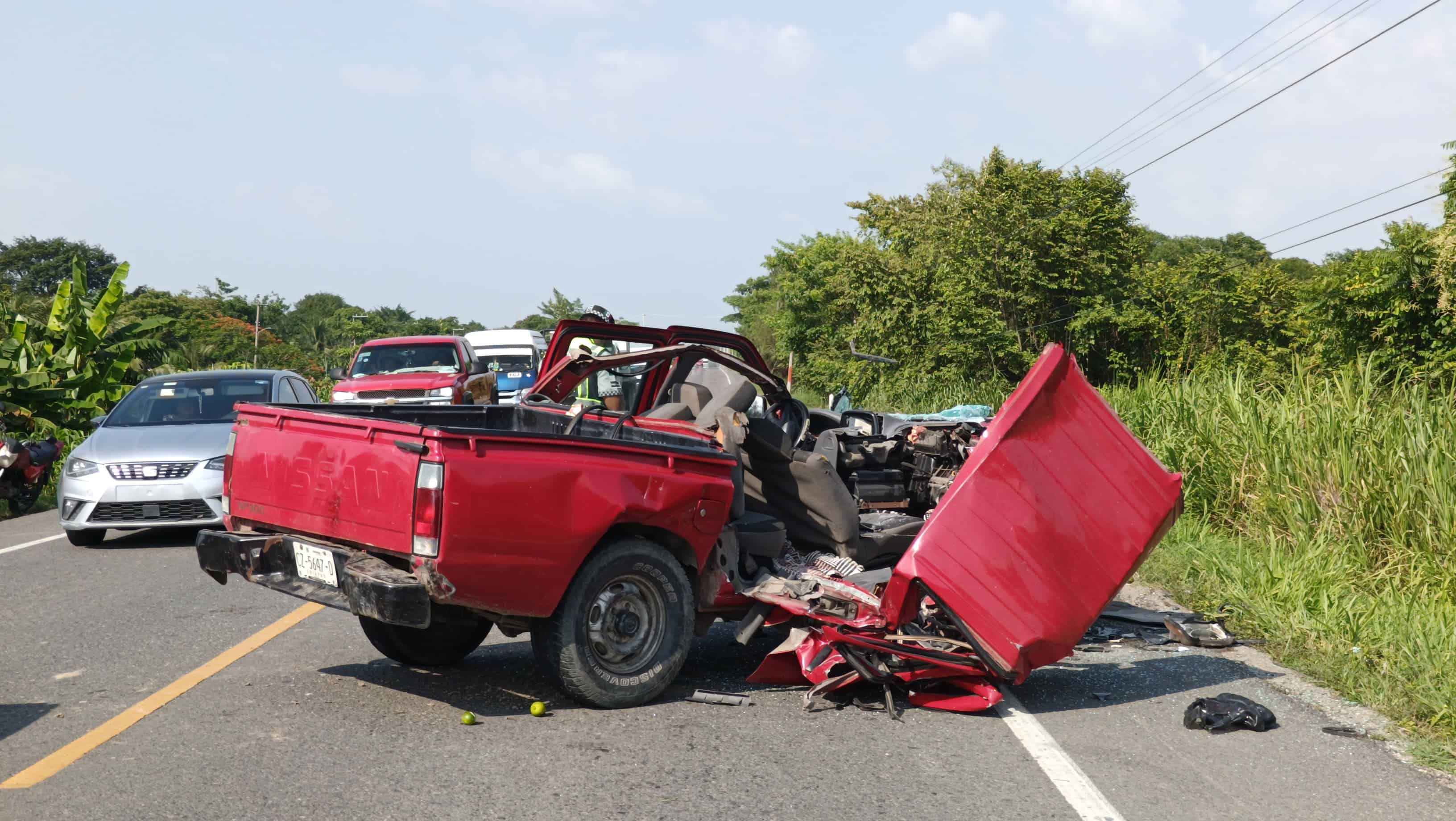 Aparatoso accidente se registró la tarde de ayer en la carretera federal Coatzacoalcos–Cárdenas, a la altura del Poblado C-33 y la colonia Nueva Esperanza, donde una camioneta terminó destrozada y abandonada sobre uno de los carriles de circulación.