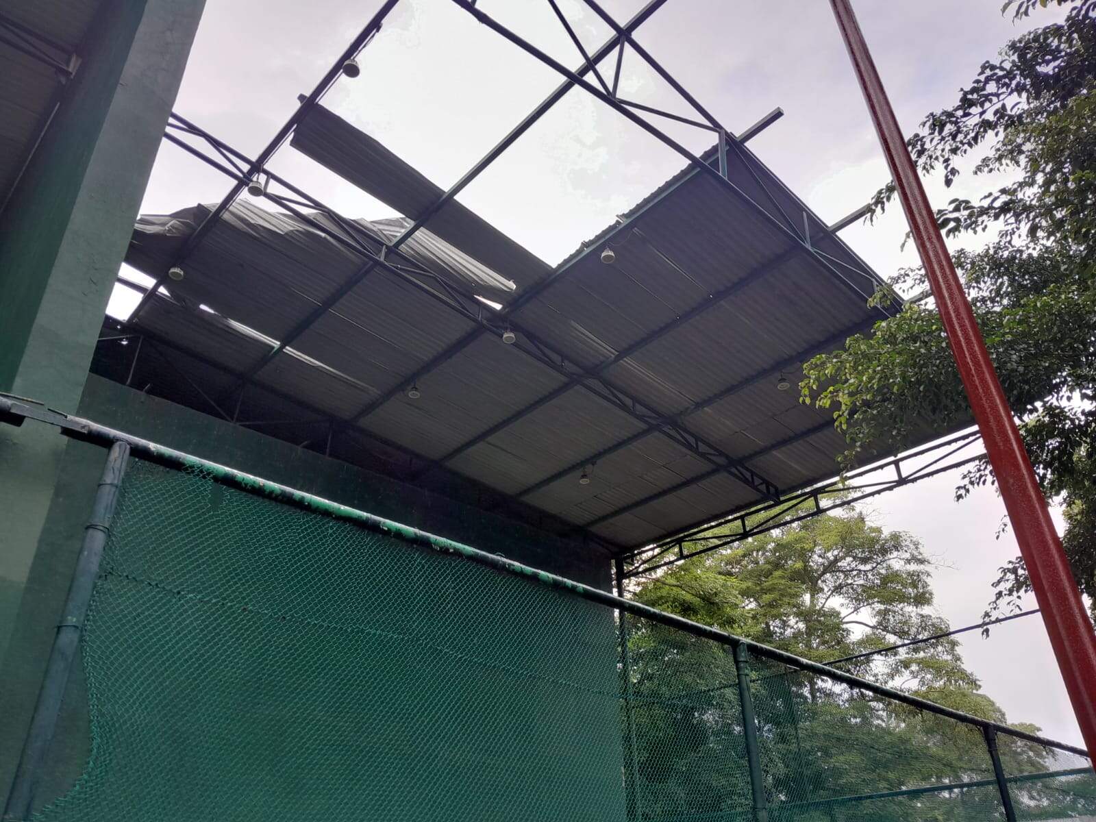 Manifestaron que son muchos los jóvenes que acuden a la unidad deportiva a practicar frontón, pero es el caso, que en días de lluvia es imposible hacerlo en la cancha dañada, porque el techo fue arrancado por la tromba casi por completo.