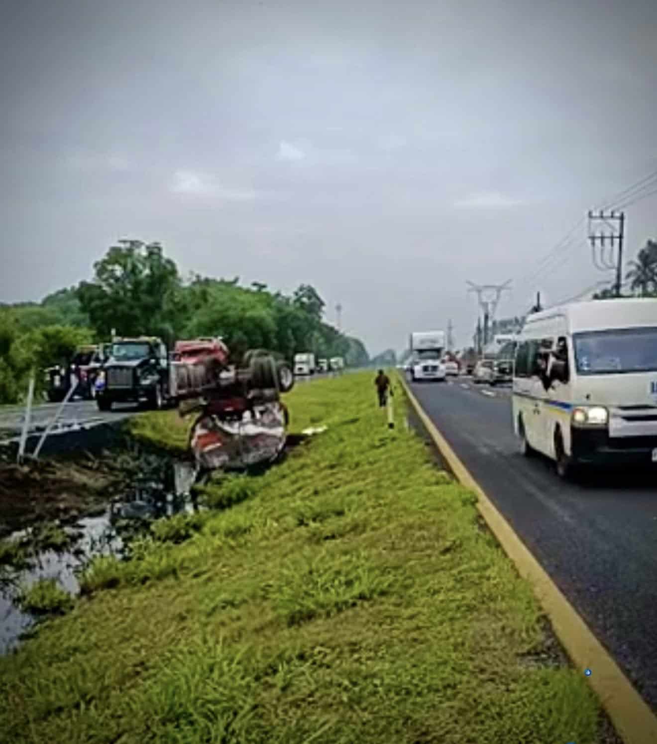 La madrugada de este domingo se registró un aparatoso accidente sobre la carretera Cárdenas – Villahermosa, a la altura de la colonia Mario Barrueta de esta municipalidad, pasando el Cedis Walmart, donde una pipa tipo Full cargada con combustóleo volcó y quedó sobre la carpeta asfáltica y el acotamiento.