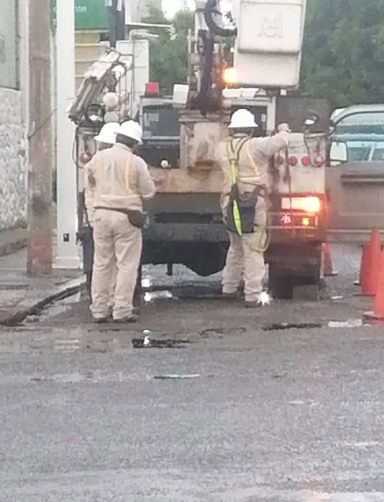 En tanto una cuadrilla de la CFE trabajaba a la altura del hotel Báez Carrizal; la circulación fue abierta hasta alrededor de las 5:30 de la tarde, a la espera de que se restableciera el servicio de energía eléctrica.