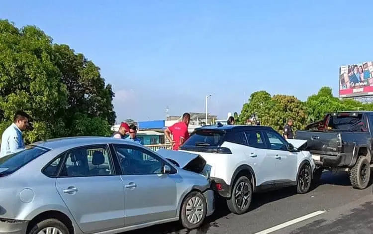 Una carambola vehicular entre al menos cuatro unidades particulares, se registró la mañana de ayer martes en el puente Grijalva I, entrando sobre la carretera Macuspana – Villahermosa; a la altura de la colonia La Manga con dirección al Centro.