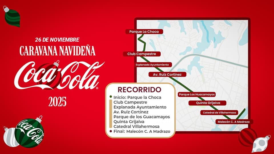 En este sentido, la secretaria de Turismo, Katia Ornelas confirmó la realización de la Caravana Navideña Coca-Cola, recorrido emblemático que este año se realizará en cinco entidades del país, arrancando el 26 de noviembre en Tabasco.