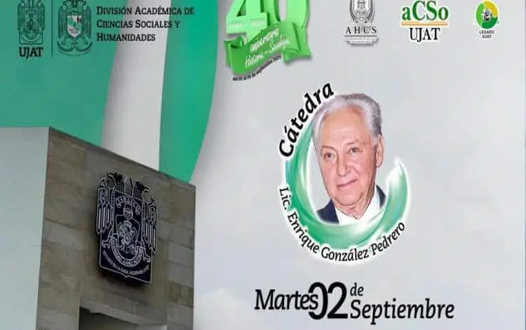 El martes 2 de septiembre, como parte de las celebraciones del 40 aniversario de la creación de las carreras de Historia y Sociología en la UJAT, se abrirá la cátedra extraordinaria "Enrique González Pedrero", con una conferencia magistral disertada por Roberto Salcedo Aquino.