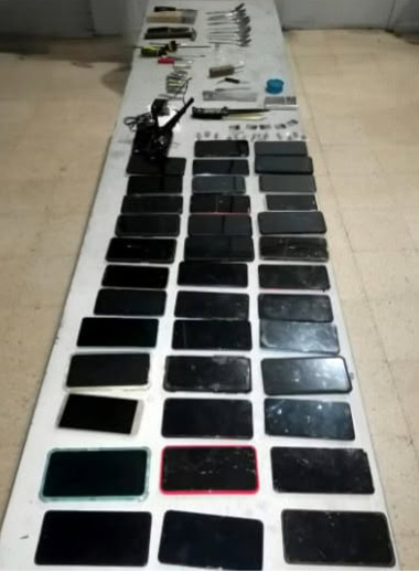 Durante la inspección preventiva se logró el aseguramiento de objetos prohibidos, entre ellos un total de 52 teléfonos celulares de diversas marcas, envolturas con marihuana, una batería y cinco cargadores para celular.