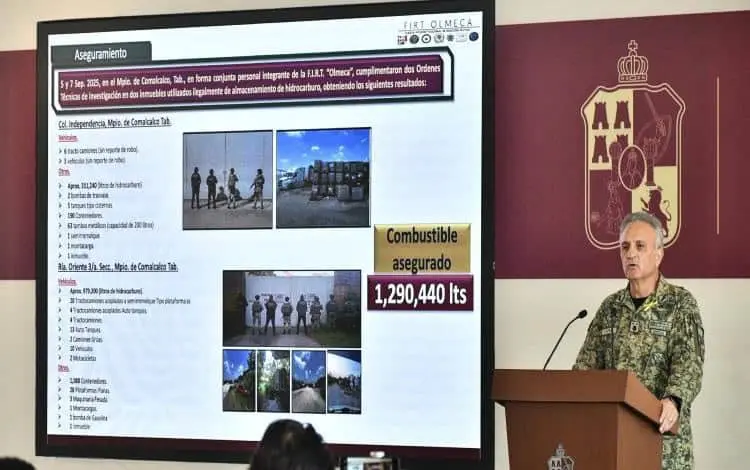 - López Martínez informó que, en el comparativo con el periodo enero-agosto de 2024, en el año actual se incrementó en 1 mil 141.52% el aseguramiento de hidrocarburo de procedencia ilícita, con valor de casi 200 millones de pesos; 824.50% las dosis de drogas; 80.30% en el de vehículos asegurados, y de 94.52% en la cantidad de armas de fuego decomisadas.