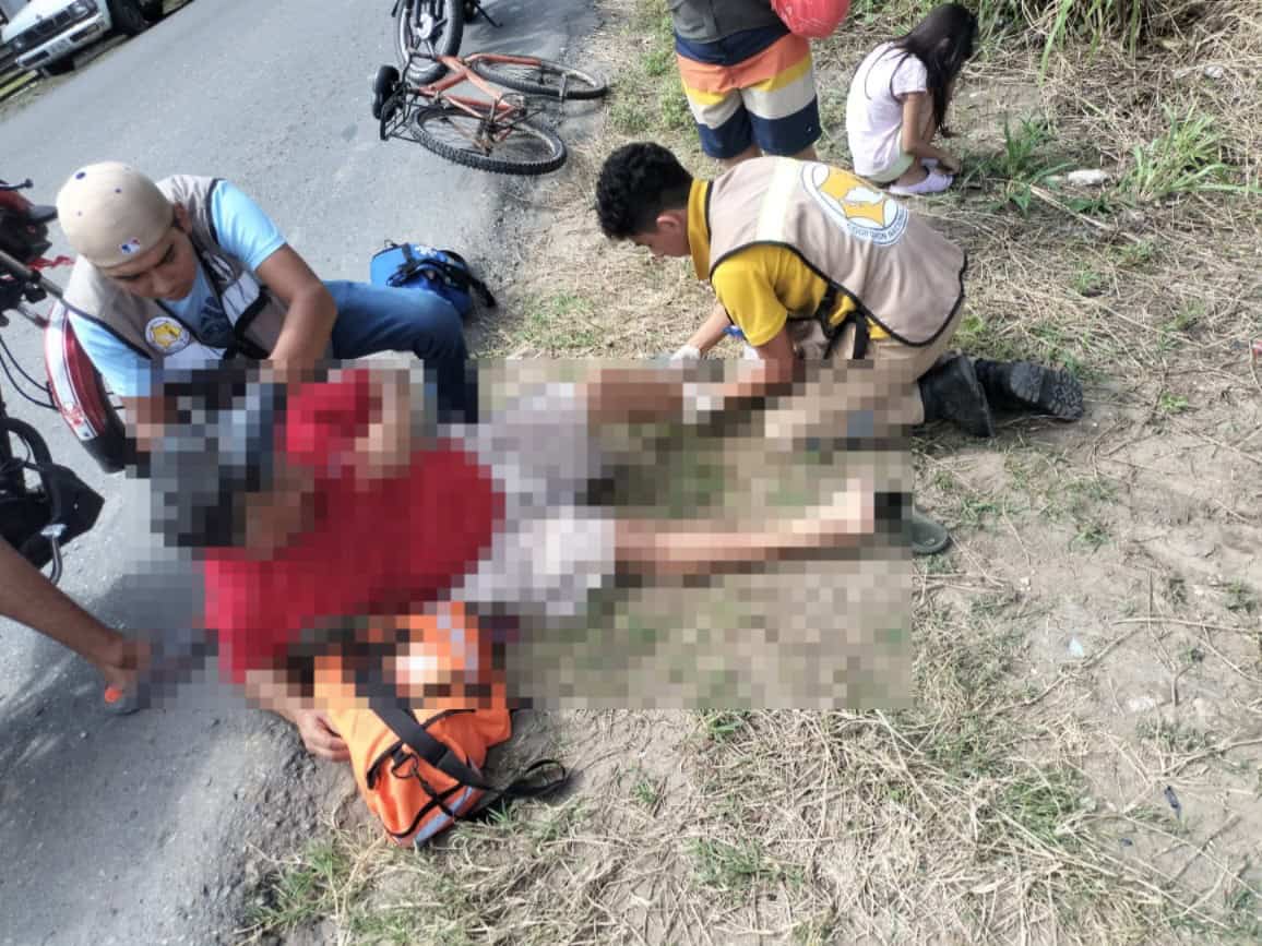 Un hombre de unos 50 años resultó con golpes y lesiones, luego de ser arrollado por dos menores de edad; que circulaban a exceso de velocidad a bordo de una motocicleta.