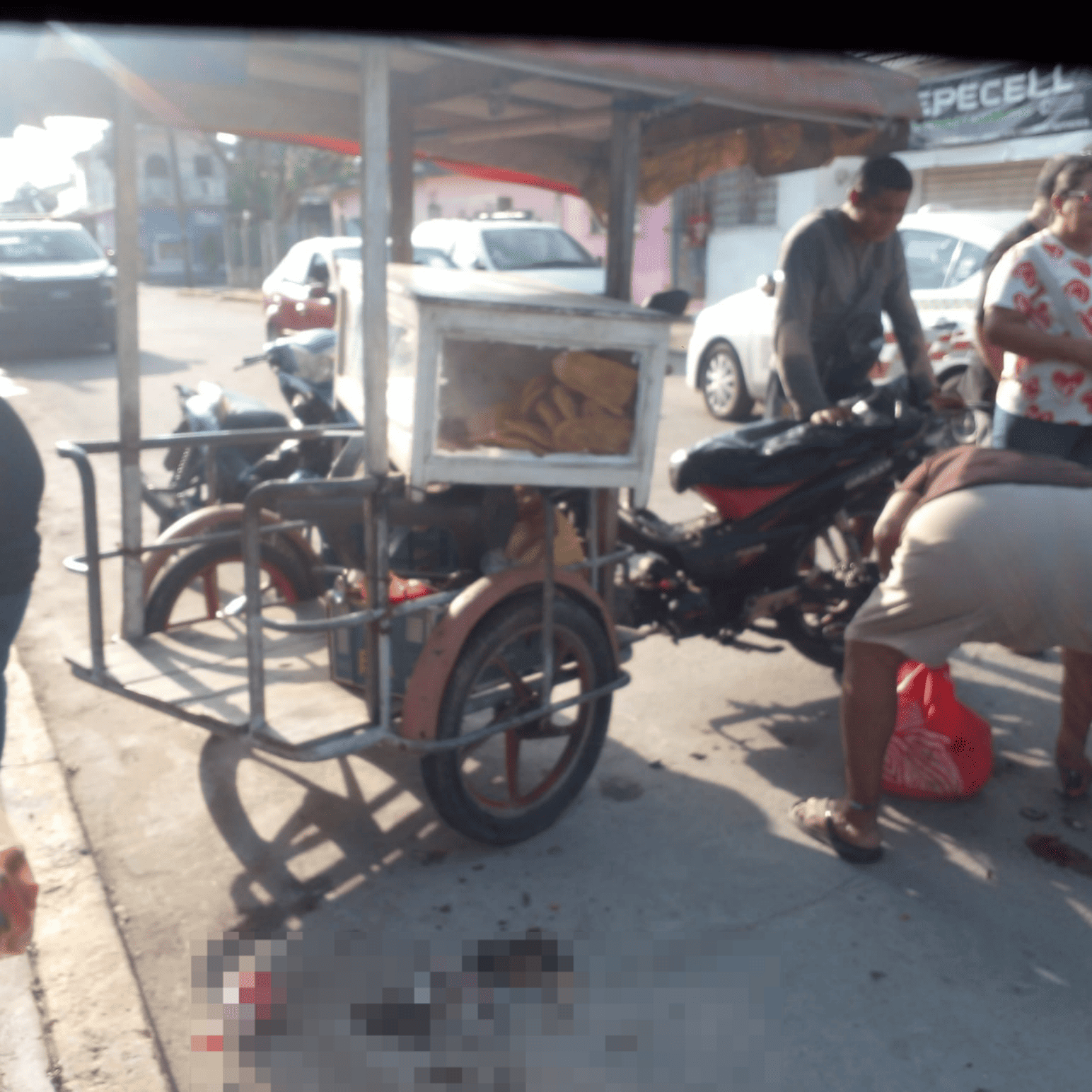 Vendedor de pastelitos que se desplazaba a bordo de una motocicleta para ofrecer sus productos, terminó hospitalizado tras derrapar y caer al pavimento provocándose una herida en la cabeza.