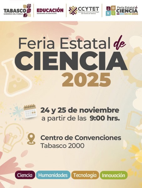 Sostuvo que el futuro de Tabasco se construye con el talento de su gente. "El conocimiento debe ser motor fundamental para el bienestar de las familias tabasqueñas", manifestó al inaugurar la Feria Estatal de Ciencia 2025, en el Centro de Convenciones de Villahermosa.