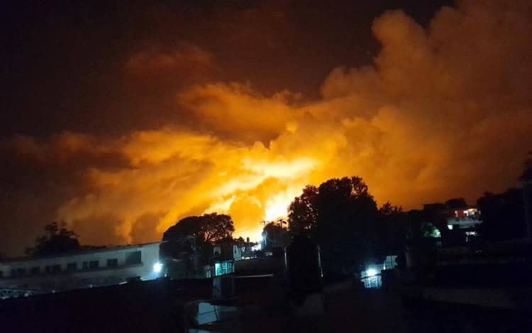 Se mantiene un cerco de seguridad en la zona de la explosión del ducto de Pemex así mismo el desfogue de los mechones del complejo petroquímico de Nuevo Pemex, trabaja a marchas forzadas con un fuerte olor a gas y azufre afectando a la población en general.