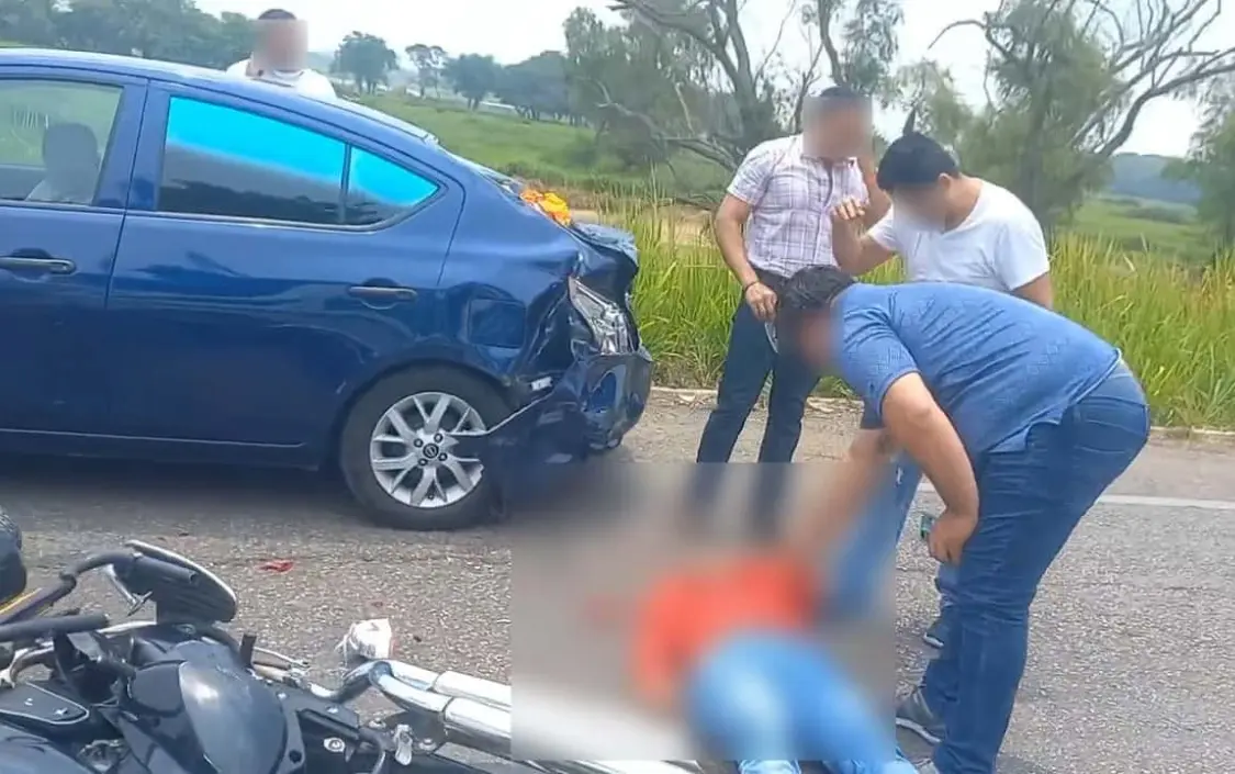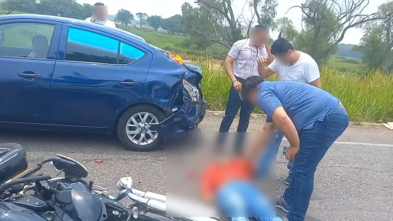 Motociclista resulta lesionado tras choque por alcance en la carretera Teapa–Villahermosa.