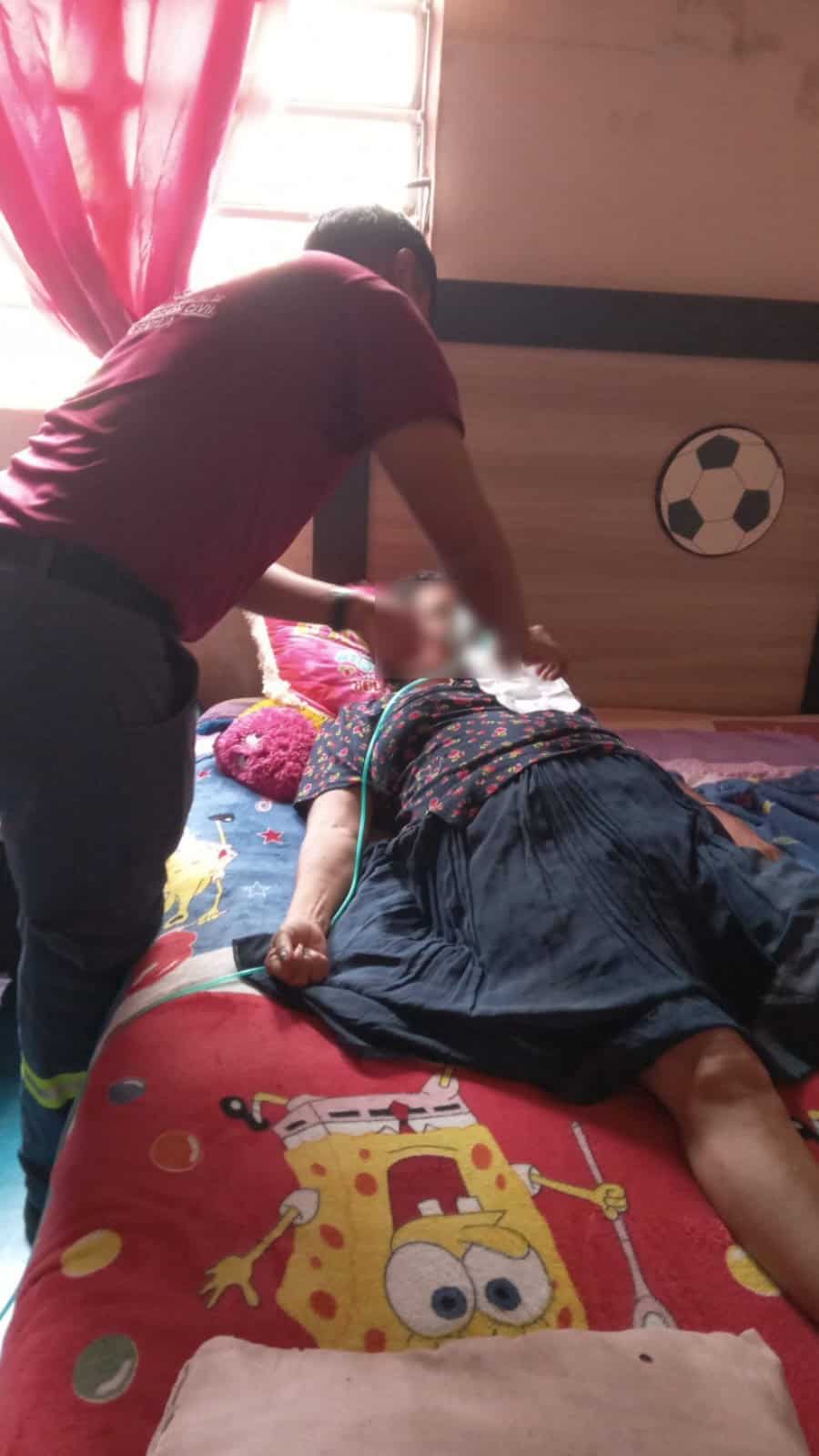 Familiares de una fémina solicitaron ayuda para prestarle los primeros auxilios ya que el humo del incendio que se registraba a unos metros de su vivienda estaba afectando su salud.