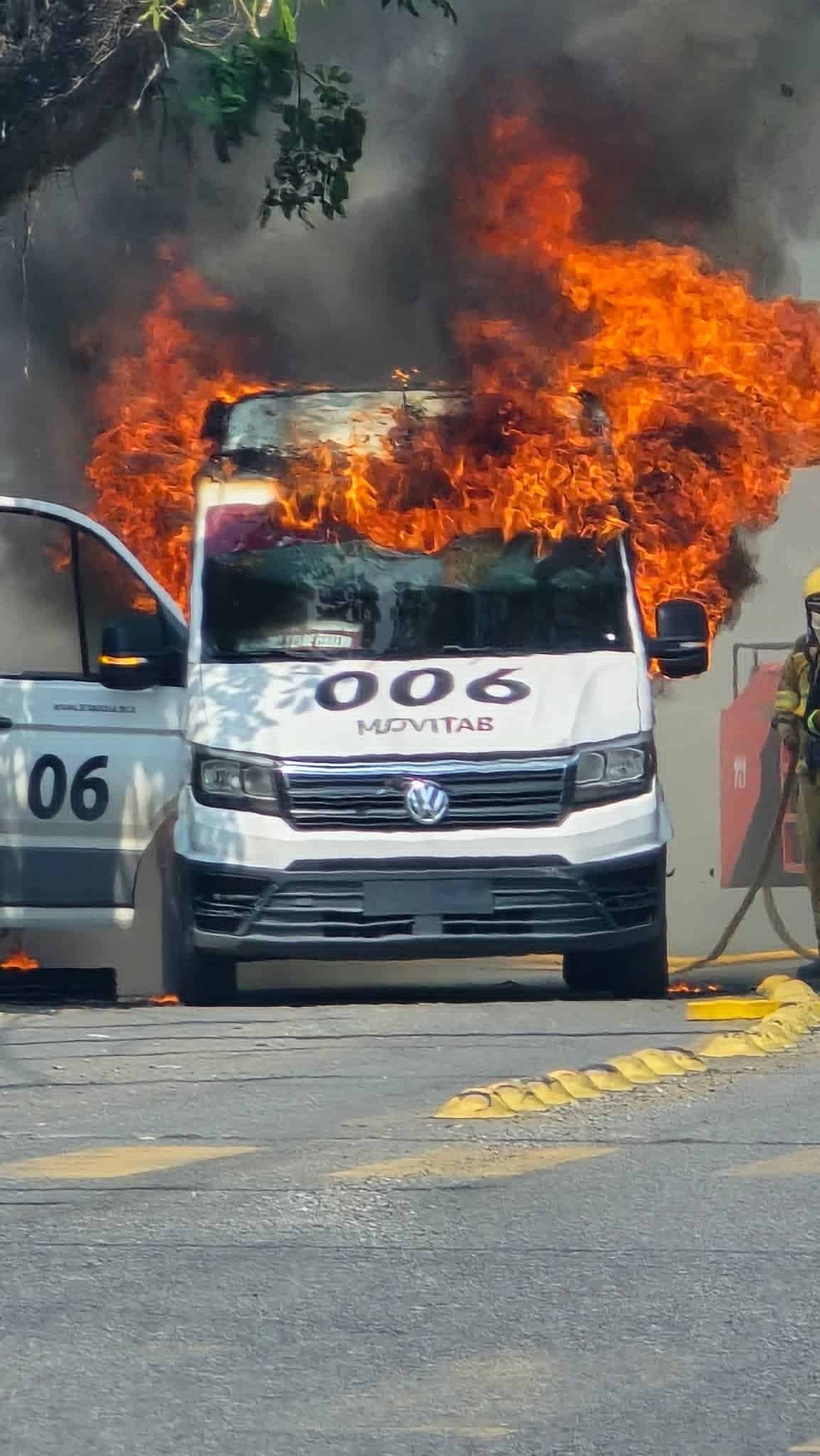 Al instante los pasajeros lograron salir junto con el conductor, antes de que la unidad se viera envuelta en llamas; el fuego inició en el tablero y se extendió por en medio de la van.