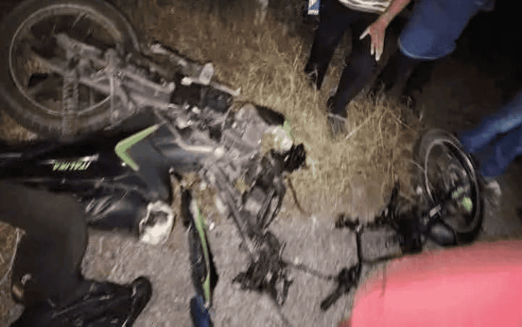- La moto fue partida prácticamente en dos, mientras que los tripulantes quedaron ensangrentados y gravemente lesionados sobre el asfalto.