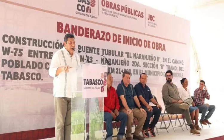 - El Gobernador Javier May Rodríguez puso en marcha la construcción del puente tubular que comunica a las familias del poblado C-11 con la comunidad de El Naranjeño, en el municipio de Cárdenas; en la obra se invierten más de 48 millones de pesos y tendrá con una vida útil de 100 años.
