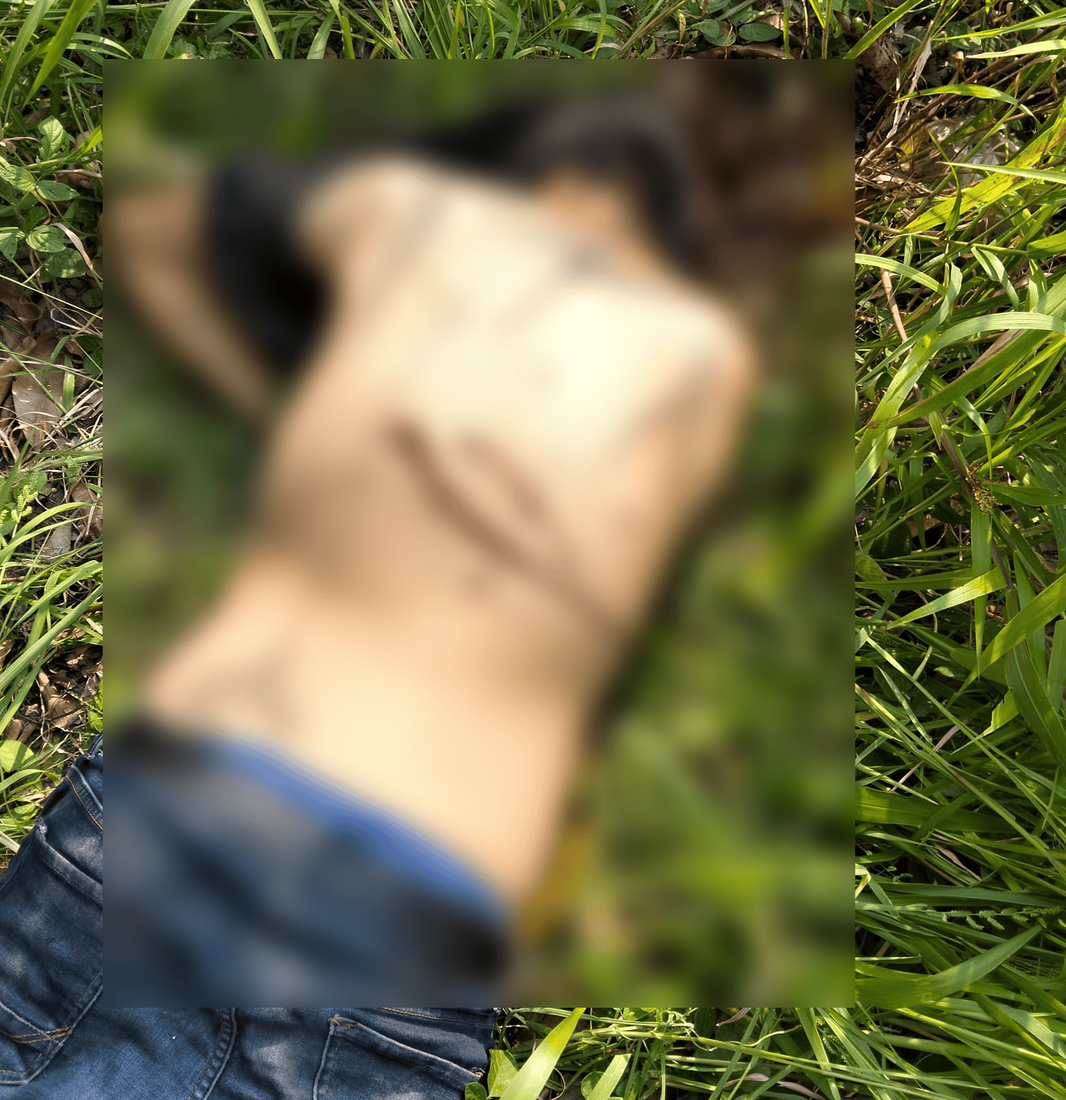 - El cadáver fue hallado al interior de la maleza, boca abajo, y sobre su espalda una cartulina blanca con un mensaje amenazante; dirigido a presuntos ladrones de motocicletas. El occiso vestía un pantalón de mezclilla azul y una playera negra, la cual fue utilizada para cubrirle el rostro.