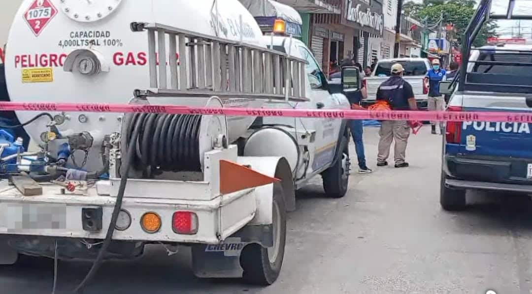 - En la zona, peritos hallaron una pipa de la gasera "El Gallito", marca Ram, placas de Tabasco; a unos metros el cuerpo de un masculino que vestía playera color azul cielo, pantalón azul marino y botas.