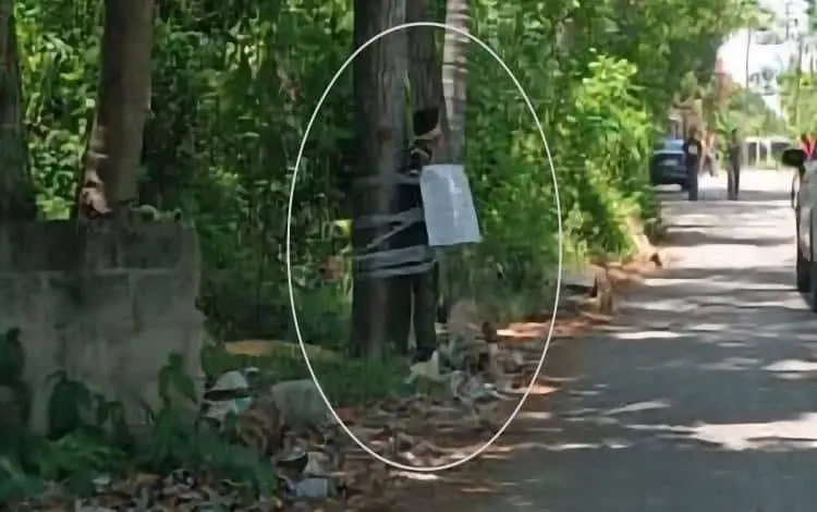 La mañana de ayer domingo se registró una fuerte movilización de la Policía Municipal y la Guardia Nacional sobre la carretera principal de la colonia La Unión en Ciudad Pemex, donde pobladores reportaron la presencia de un sujeto golpeado y amarrado a un árbol, a unos 100 metros del Motel Campestre.