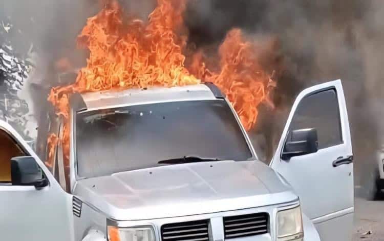 - 01:00 p.m. Arde camioneta mientras rodaba