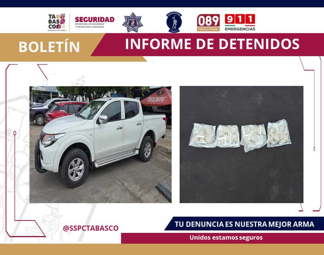 Como parte de la Estrategia Antiextorsión y del Plan de Contención del Delito desplegado por la Secretaría de Seguridad y Protección Ciudadana de Tabasco y la Fuerza Interinstitucional de Reacción Táctica (FIRT) Olmeca, fueron detenidas 4 personas como presuntas responsables de delitos contra la Ley General de Salud y Robo de Vehículo.