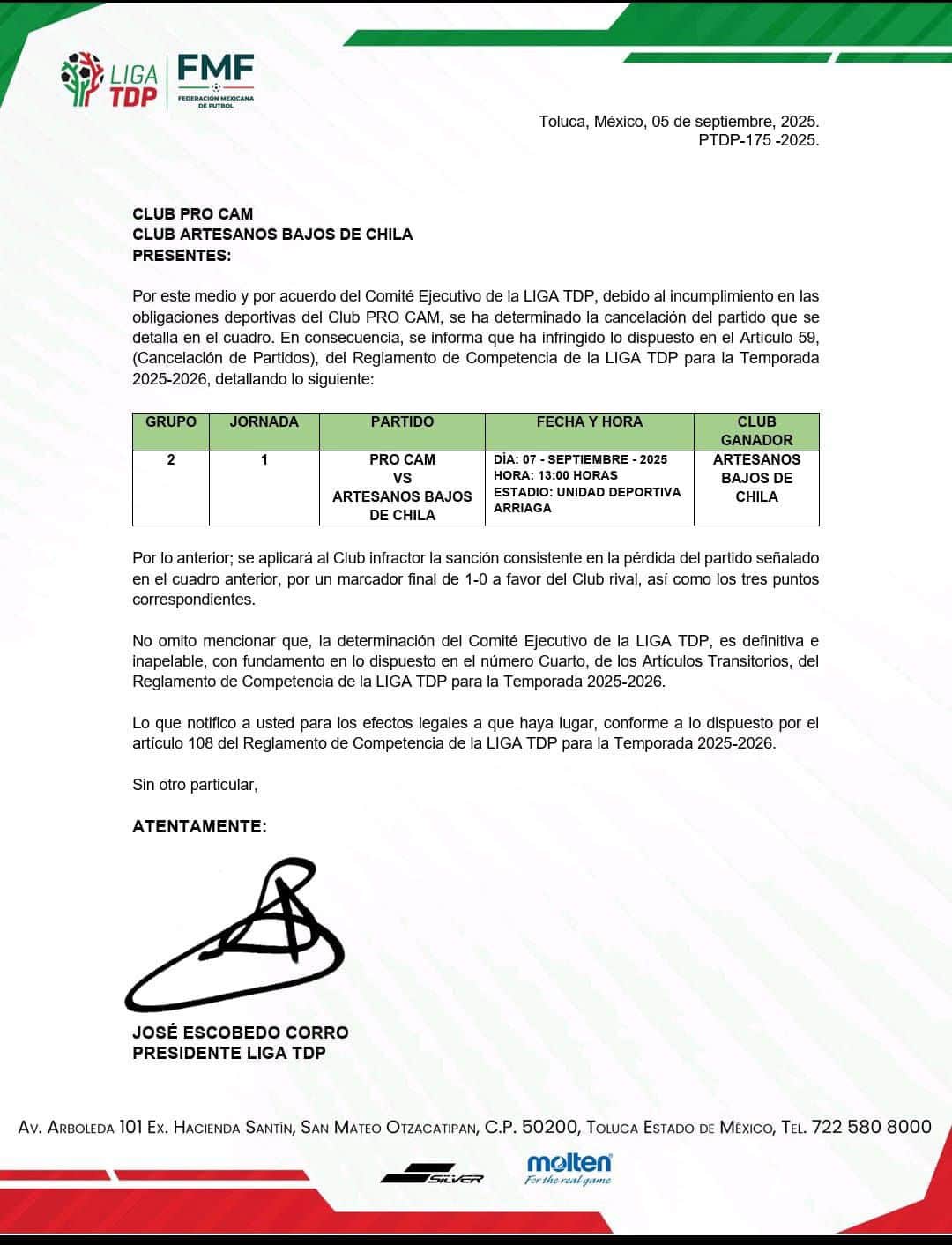 - La Liga TDP emitió un comunicado en el que describe que el conjunto chiapaneco incumplió en obligaciones deportivas.