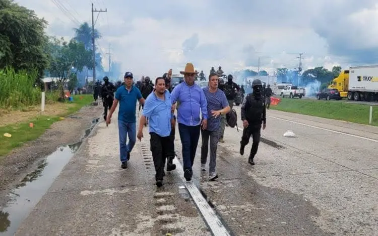 - El día de ayer martes alrededor de las 8:20 de la mañana, los obreros al no obtener resultado de la liberación de sus compañeros, bloquearon la carretera federal a la altura de la comunidad conocida como La Arrocera, donde hubo diálogo con el representante del gobierno estatal, Rubén Padrón, quien fue acompañado por autoridades estatales y municipales.