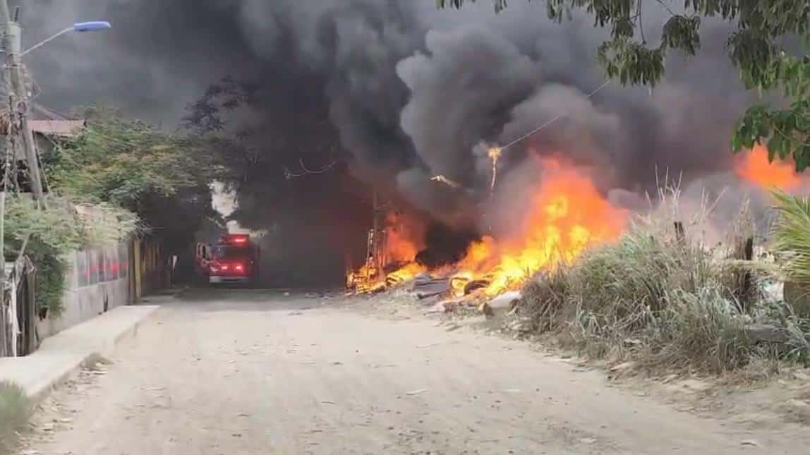 Este incendio se registró en punto de las cinco de la tarde de ayer, luego que limpiaran un terreno, pero el fuego se extendió en cuestión de segundos hasta llegar a la chatarrera.