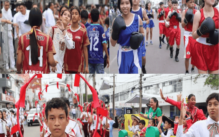 Sobre la avenida Gregorio Méndez Magaña se desarrolló con éxito el magno evento en el que se observó un mosaico de colores patrios y evocaciones históricas.