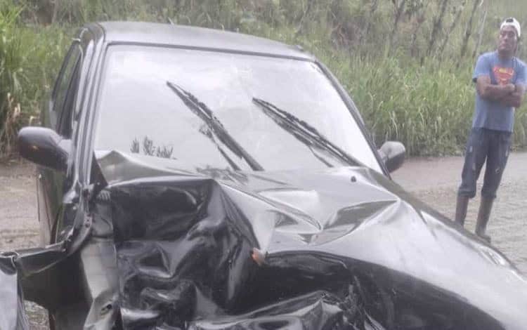 Tacotalpa.-Aparatoso choque entre un automóvil particular y una combi del transporte público, dejó cuantiosos daños materiales la tarde de ayer en el tramo carretero Tapijulapa-Oxolotán; no hubo lesionados.