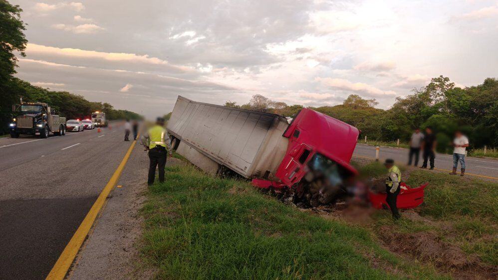 Este accidente fue atendido por personal de la Guardia Nacional que fueron alertados a primera hora de ayer; se trataba de un tráiler de color rojo con caja blanca, el cual quedó en medio de la cuneta divisora de los carriles del libramiento.