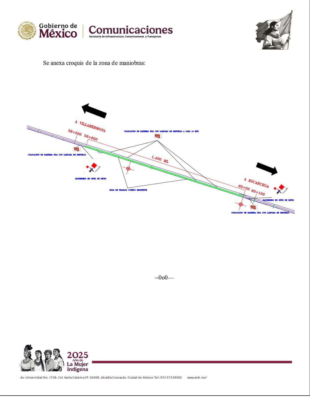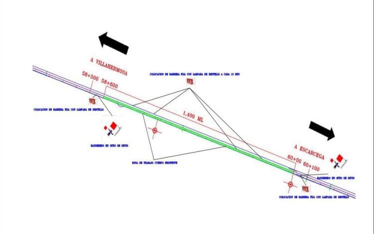 La Secretaría de Infraestructura, Comunicaciones y Transportes (SICT) en Tabasco informó que, como parte de los trabajos de modernización y ampliación de la carretera Villahermosa—Escárcega, habrá un desvío de vialidad por el carril izquierdo para realizar labores del lado derecho del km 58+600 al km 60+000.