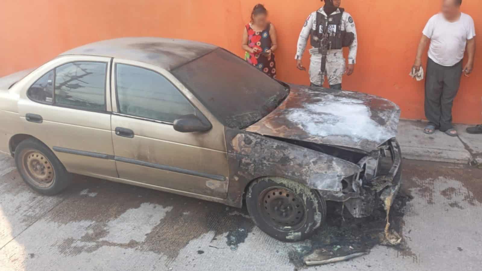 Vecinos reportaron la situación de a las autoridades que un sujeto bajó de una motocicleta e incendió un vehículo estacionado, rápido huyeron con rumbo desconocido.