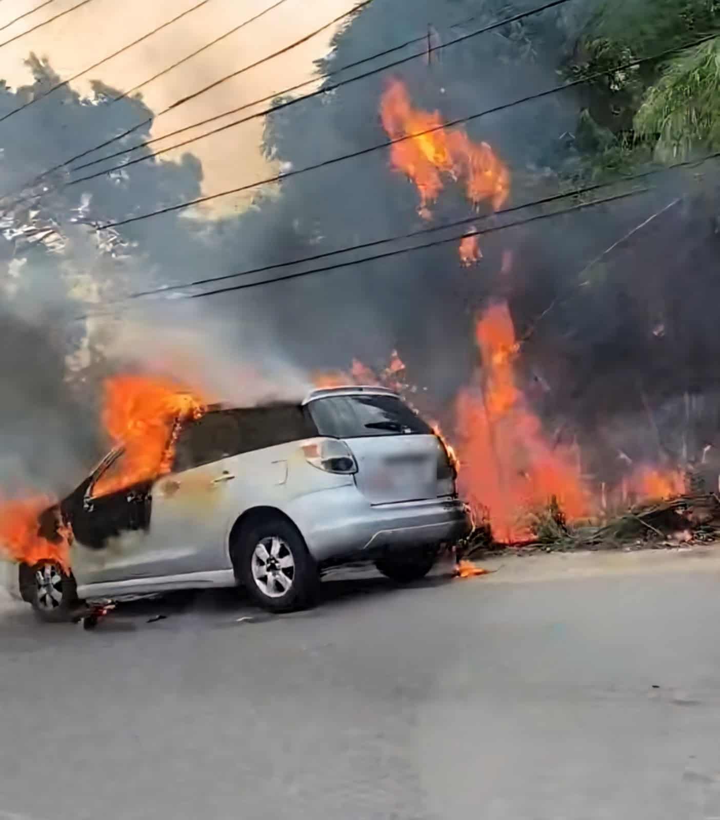 Como método de distracción otros malandros a bordo de otra motocicleta intentaron quemar otro vehículo estacionado en la calle Gorrión esquina con Petirrojos de la colonia José María Pino Suárez (Tierra Colorada).
