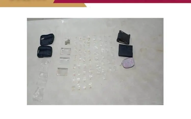 Durante la intervención se aseguró un conjunto de dosis de sustancias ilícitas, consistentes en bolsitas con sustancia granulosa con características propias de la metanfetamina conocida como cristal, así como dosis con características similares a la cocaína en sus modalidades "reina" y "piedra", además de numerario en efectivo, carteras y monederos.