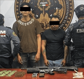 Logrando la detención de quienes responde a los nombres de Kevin "N", 23 años, originario de Tepic, Nayarit, Marco "N", 26 años. también de Tepic, Nayarit.