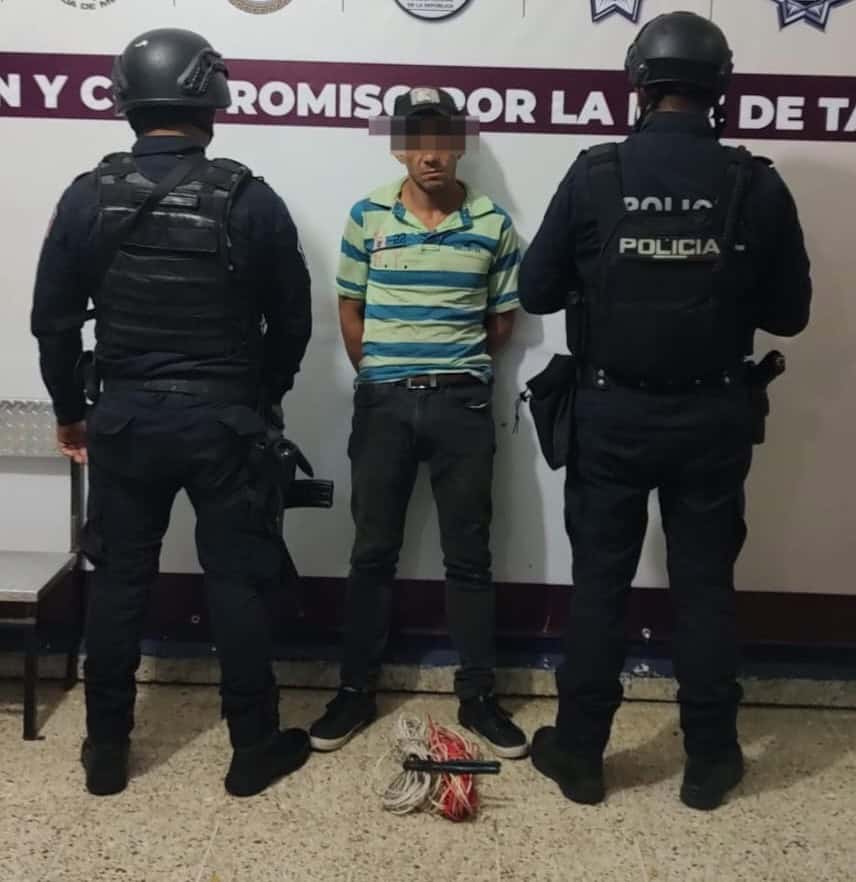 El presunto ladrón se identificó como Erick Fernando C.B., de 35 años, se le aseguró una mochila, una pinza de electricista, y varios tramos de cables que ya tenía en su poder.