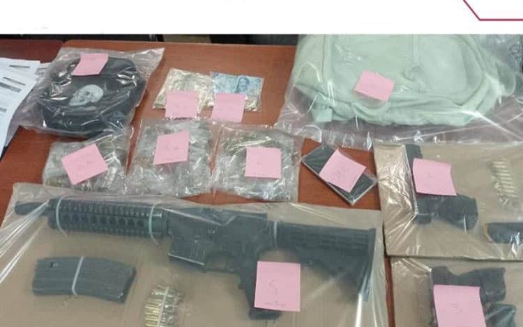 - Tras realizar una revisión de rutina, se les encontró tres armas de fuego, dos corta y otra larga abastecida, varias bolsas de hierba con contenido similar a la marihuana, un teléfono celular y dinero en efectivo.
