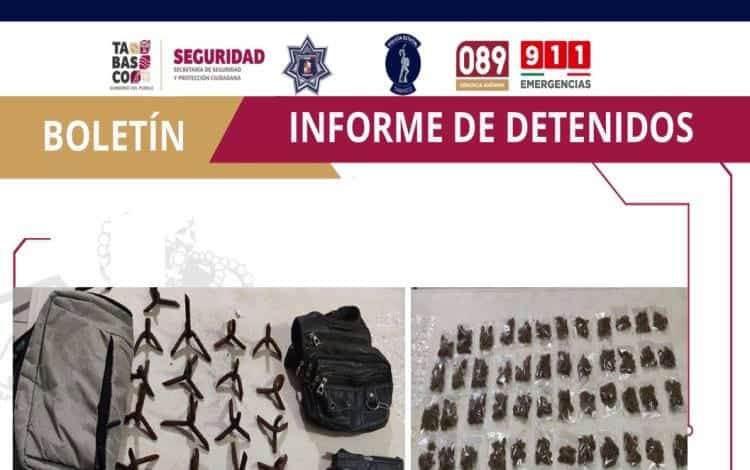 En el marco de la Estrategia Nacional Antiextorsión que implementa la Secretaría de Seguridad y Protección Ciudadana (SSPC) en coordinación con la Fuerza Interinstitucional de Reacción Táctica (FIRT) Olmeca, llevaron a cabo la detención de 2 masculinos como presuntos responsables del delito de narcomenudeo.