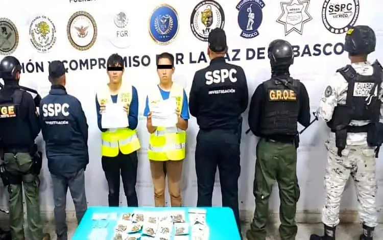 En dichas acciones fueron detenidos Mario de Jesús "N" (18 años) y José Armando "N" (19 años), quienes viajaban en una motocicleta con reporte de robo y transportaban droga y dinero en efectivo.