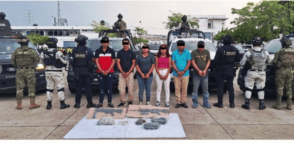 La Secretaría de Seguridad y Protección Ciudadana (SSPC), en coordinación con la Fuerza Interinstitucional de Reacción Táctica (FIRT) Olmeca, logró la detención de seis personas, presuntos integrantes de una célula generadora de violencia, en la ranchería Principal Sinaloa, por presuntos delitos contra la salud y portación de armas de fuego.