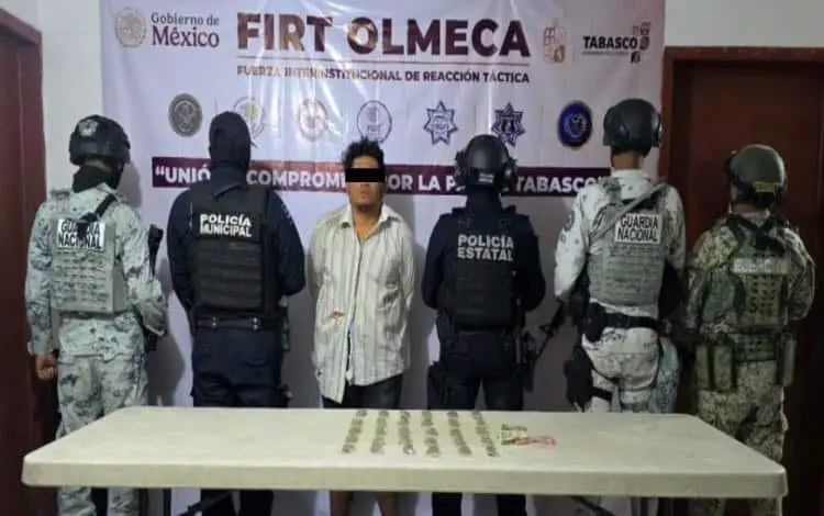- En un trabajo coordinado entre las fuerzas estatales y federales que integran la Fuerza Interinstitucional de Reacción Táctica (FIRT) Olmeca: la Secretaría de Seguridad y Protección Ciudadana, Defensa, Ejército Mexicano, Guardia Nacional, Marina Armada de México, las Fiscalías General de la República y del Estado, así como elementos del Grupo Especial Tabscoob y de la Policía Municipal, se llevó a cabo la detención de dos presuntos generadores de violencia, quienes principalmente operarían en el municipio de Comalcalco.
