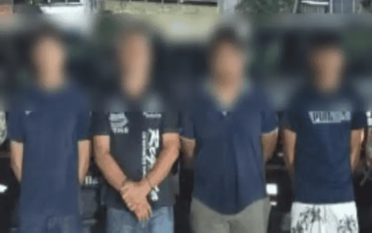 - Los detenidos dijeron llamarse Alejandro Javier (a) "El Tronco", de 24 años de edad, Bryan (a) "El Gallito", de 20 años, Gumaro de 25 años de edad con domicilio en la carretera 4 milpas de Puerto Madero del municipio de Tapachula, Chiapas y Lorenzo (a) "El Gallo", de 41 años de Comalcalco, Tabasco, durante su captura se les aseguró marihuana y un auto Toyota Yaris color gris con placas de Tabasco.