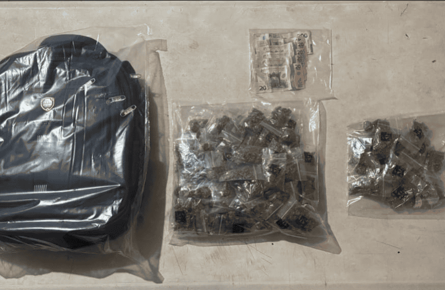 Tras su captura se les aseguró envoltorios de plástico transparente que en su interior contenían hierba seca color verde con características similares a la marihuana, dinero en efectivo y una mochila color negra.